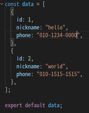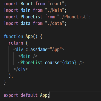 App.tsx에 자식 component를 불러왔다. Main과 Phonlist를 불러 왔고, 자식 component에 목업 데이터를 보내주는 방식을 취했다.
