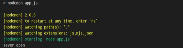 *app.listen(port, ()=>console("server open"))을 하면 server를 열때 사용하는 기능이고 console은 commandline에서 확인 할 수 ㅣㅆ다.