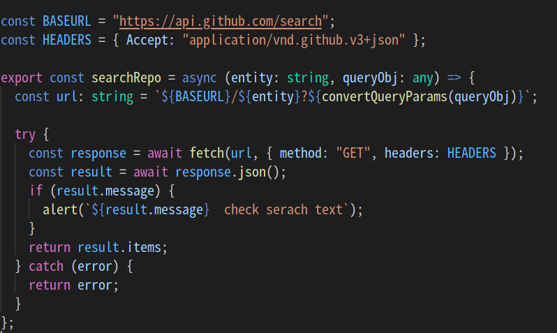 *searchRepo가 실행이 되면, converQueryParams 함수가 실행 되면서 url을 완성 시킨다.