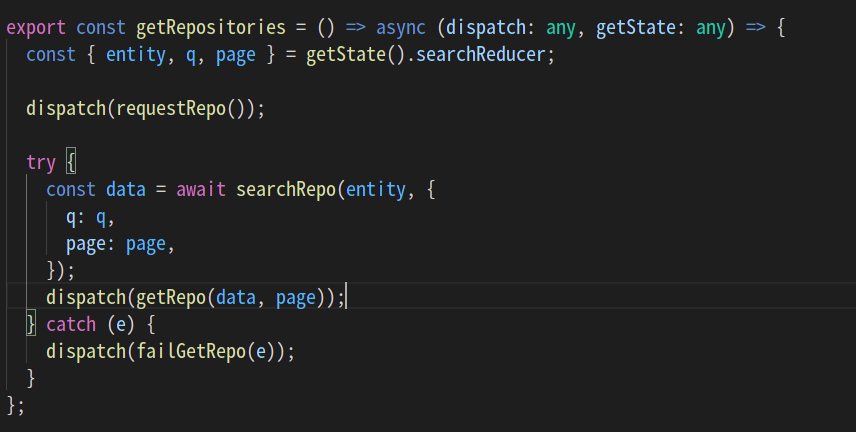 *thunk가 실행이 되면서 request가 되고, searchRepo가 실행이 된다.