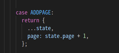 reducer의 page의 초기 값으로 page: 1을 주었다. 그리고 나서 dispatch가 실행이 되면 reducer에서 page를 1 추가했다. page가 추가 되면 위에서 실행됐던 함수들이 또 실행이 된다.