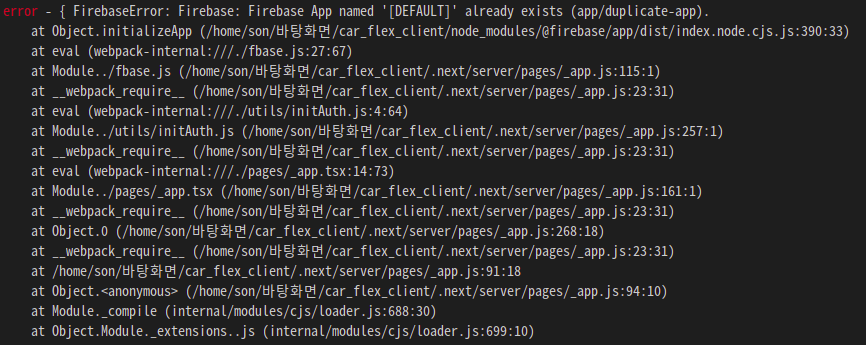 firebase를 한번 초기화를 하고 page에서 firebase가 호출이 되었을 떄, 초기화 한 값이 있기 때문에 중복되어서 중복 error가 발생했다.