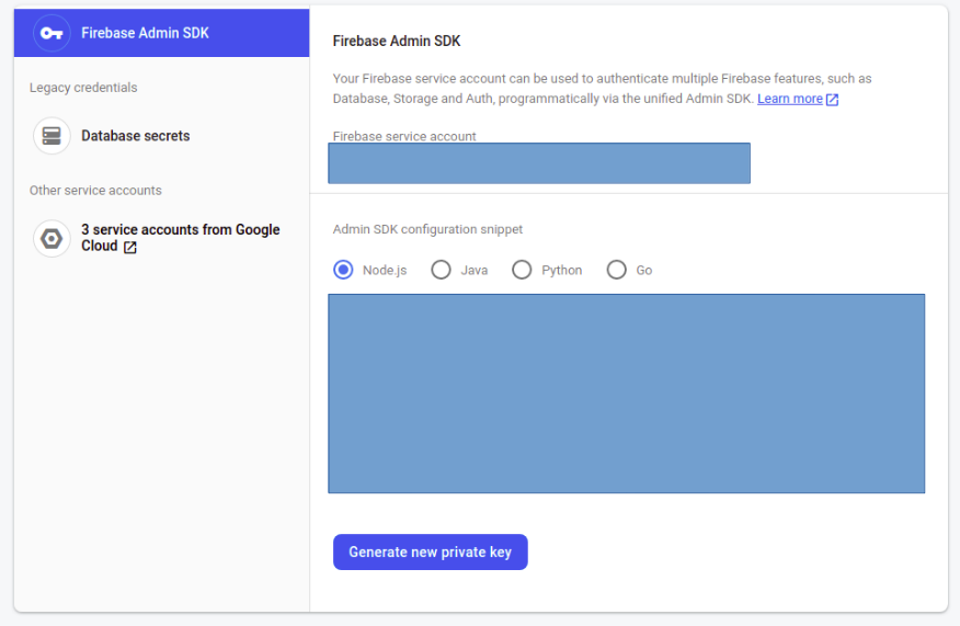 사용을 설정하는데 어려움이 조금 있다. firebase에서 privateKey를 받아와야 하는데 생각보다 firebase에서 private key 받을 수 있는 페이지를 찾기 어려웠다. 결국 찾다가 접속을 하게 되었고, privateKey를 사용하는데 key값을 설정할 때도 보통 사용하는 방식과 조금 달랐다.