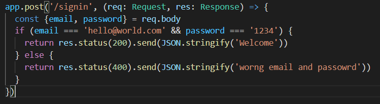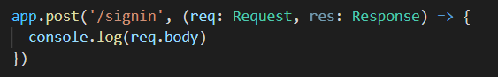 app.post('/signin', ()=>{}) post 요청(path '/signin') 이 들어오면 두번째 인자 callback이 실행되어서 처리를 하게끔 했다.