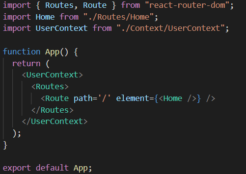 Context API를 만들었으면, 필요한곳에 사용할 수 있도록 App.tsx에서 wrapper 형식을 감싸준다. UserContext.jsx에서 children은 <UserContext> ~ </UserContext> 안에 있는 컴포넌트들이다.