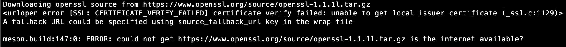 Mac에서 Mediasoup 설치 할 때, 아래와 같이 SSL error 가 발생한다면, internet 유무 확인보다 먼저 python의 상태를 확인해봐야 한다.