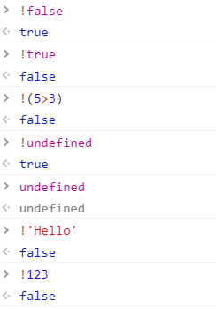 *!‘Hello’ => false (문자, 숫자 => true를 나타냄)