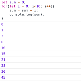 *i가 9가 될때 까지 반복 실행하면 최종값은 45가 된다.