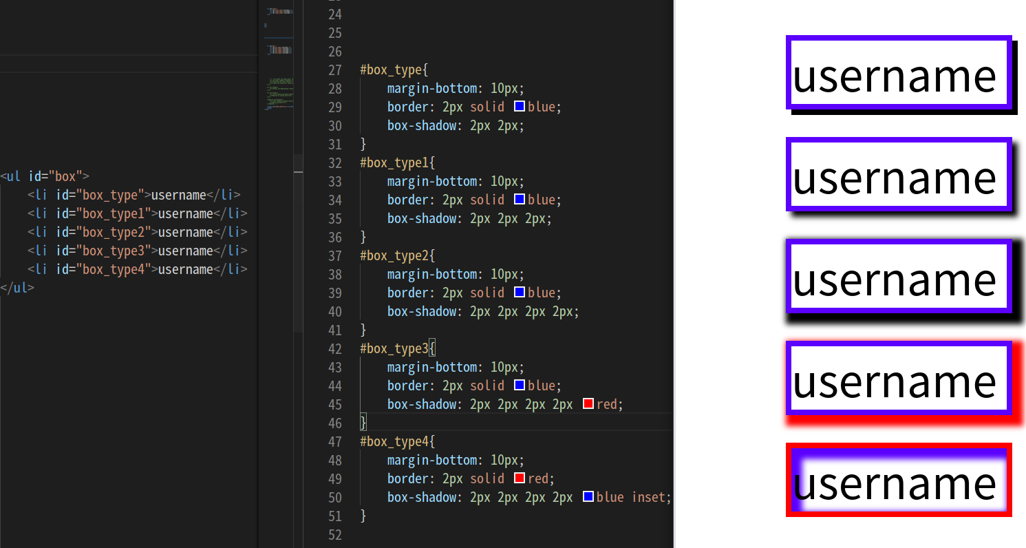 *다섯번째 2px는 그림자의 색깔을 넣을 수 있다.