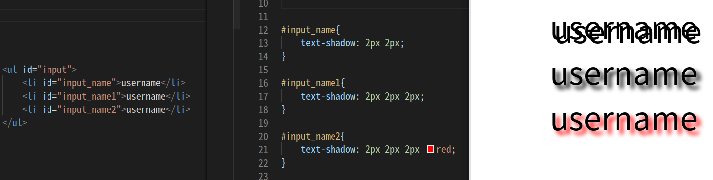 *세번째 2px는 spread 효과이다. 그림자 글자의 퍼짐 정도를 넣을 수 있다.