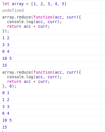 *초기값을 설정을 안했을 때, acc의 처음 값은 array의 index가 0인 값인 1이 들어 갔다. 그리고 curr은 index가 1인 값인 2부터 대입이 된다.