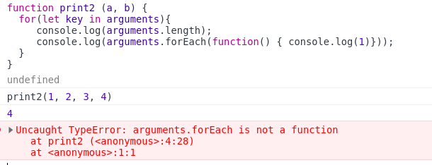 *arguments는 객체이지만, 배열에서 사용하는 length만 사용을 할 수 있다. forEach, map 같은 함수형은 사용 불가