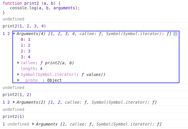 *들어오는 인자와 매개변수에 개수가 맞지 않아도 aguments라는 객체가 생성되어 저장이 된다.
