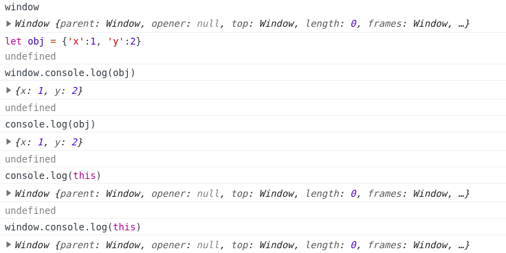*객체에 할당을 해주지 않으면 전역객체에 자동으로 할당되는 것을 알 수 있고, 함수를 사용할 때 전역객체 window를 생략하고 사용 할 수 있다.
