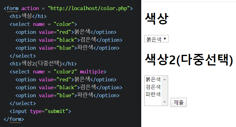 - select 부모 태그 안에 option 자식 태그를 넣는다.(다중 선택)