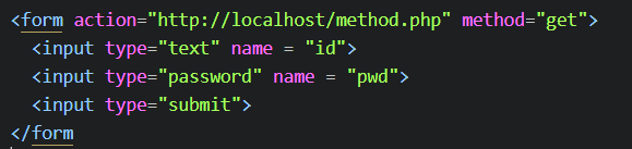 *method=“get”은 전송할 때, url주소에 전송 값을 나태 냄. 따로 method를 표시하지 않으면 get 방식으로 전송.