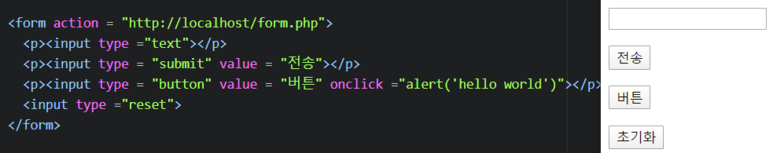 *type=“button”은 로그인 버튼같이 button을 생성하여 javascript 같은 언어가 실행하도록 하는 기능을 한다.