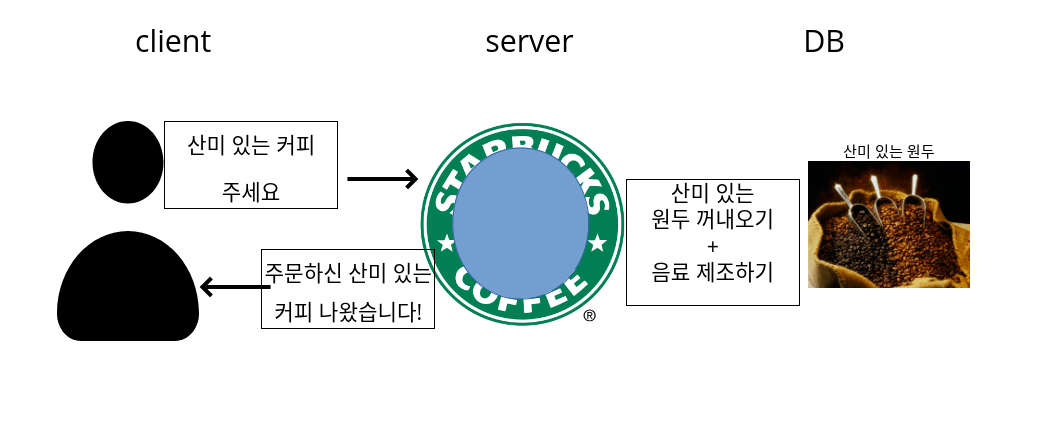 server를 카페라고 생각하면되고 DB는 카페 원두 저장소라고 생각하면 된다.