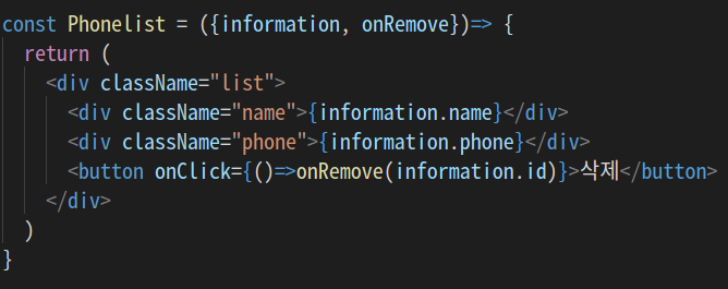 PhoneForm에서는 따로 구현을 하지 않고 Phonelist에 넘겨주기만 한다. 나중에 CSS 에서 필요할거 같아서 class를 추가했다.
