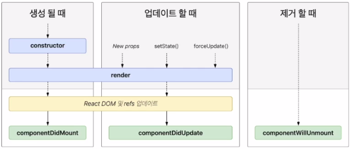 이어서 생명주기 개념을 활용해서 props, state 값을 조절할때 발생하는 기능(?)이라고 해야하나? 암튼 지금까지 작성된 component들이 render가 나서 작동되는 기능이다. 업데이트 할 때를 보면 render가 되고 DOM이 업데이트 된 이후에 componentDidUpdate 메소드가 실행이 된다.