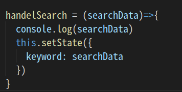 App.js에서 검색하면 글자들을 담을 수 있는 keyword라는 state를 만들었다. 그리고 handleSearch라는 함수를 만들고 변화되는 값을 keyword에 넣었다.